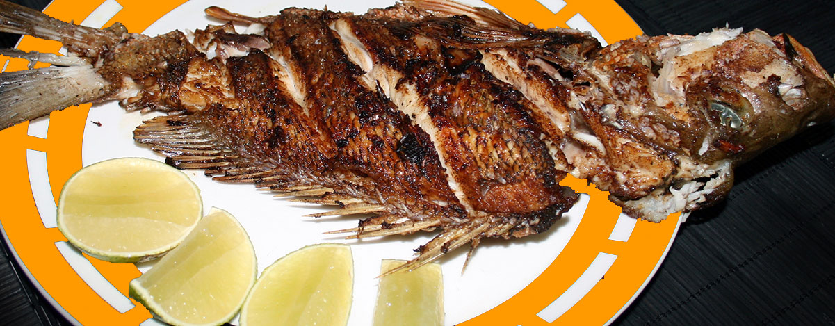 Grilled chicken, Steak with onions, Fried tilapia, grilled shrimp, soups. montaneros.